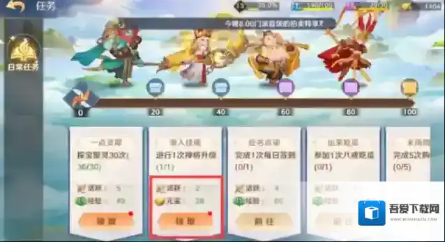 《自在西游》第一天最关键的是阵容成型,基本需要依靠抽卡来获得橙将。这个游戏几乎所有玩法都能配合赠送元宝奖励,所以前期过渡并不难,0氪第一天也可以攒到100抽。