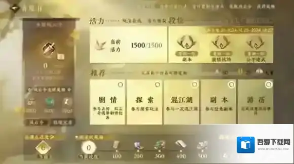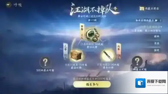 1、活动期间,每周获得500、1000雨露点时,通过“江湖不掉队”活动还能获得交子、绑定纹玉、玉华染等。