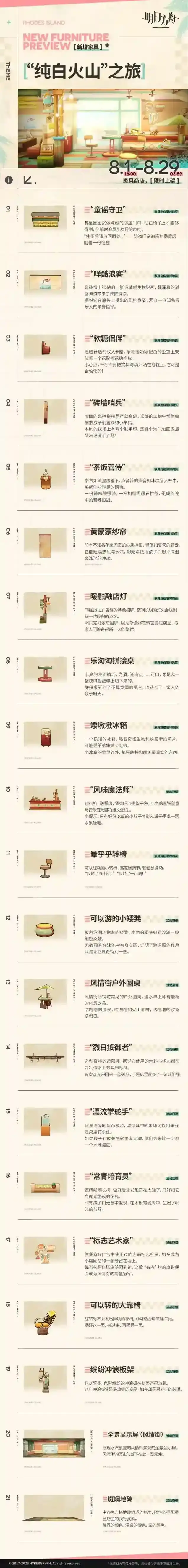 _________________新增“纯白火山”之旅主题家具,限时上架家具商店贩售时间:8月1日16:00 – 8月29日03:59