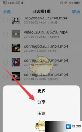 3、选择一个要导出的视屏,然后长按就可以选择。