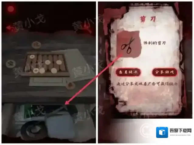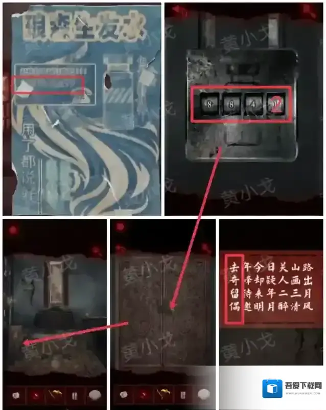 7.点击左侧柜子上的密码锁,根据画和传单上的线索,输入密码:8842