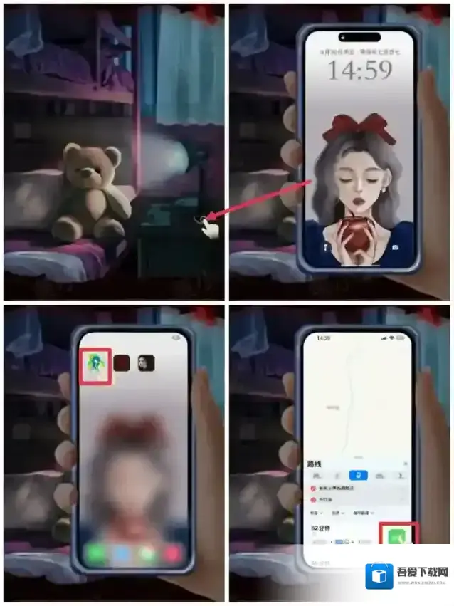 1.拾取床头柜上的手机,打开地图,前往千灯寺