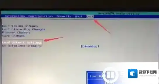 3、选择Load Default Settings回车加载设置,加载默认设置之后,部分机型需要先按F10保存重启再按F2进入BIOS继续下面的设置,如下图所示;