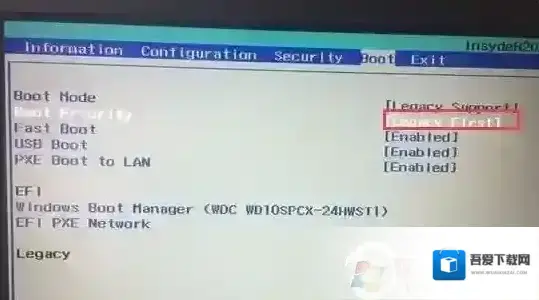 5、再把Boot Priority设置成Legacy First,按F10弹出窗口选择yes回车;