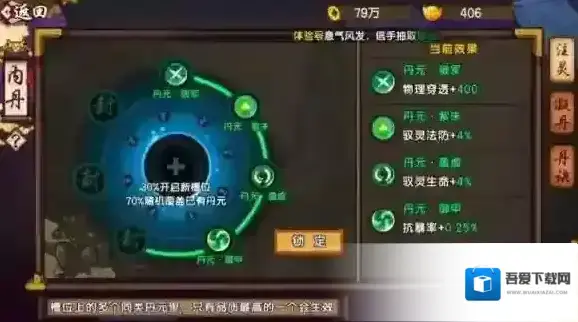 内丹不要傻了吧唧的把蓝色紫色全打上去,先用绿色把槽位都打开在打别的颜色,有能力的同学可以买张终身卡锁定你不想打掉的内丹!