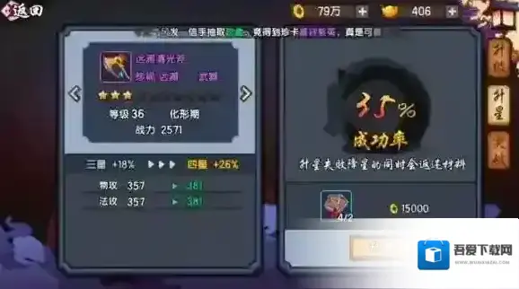 特技我就不说了,无脑升就可以了。天赋的话真灵元丹是一个不怎么容易获得的东西,我之前也说过试炼可以换一换,团扇的话还是攒着换别的吧