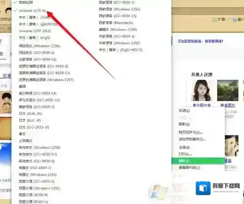4、将我们之前电脑出现问题更改了浏览器的编码方式改回来,点击浏览器内部,右键出现如图所示画面,选择编码;