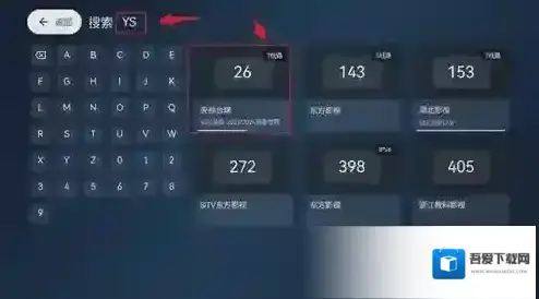 在搜索页面输入你要搜索的节目,比如你要搜索央视台球,你直接选择央视的首字母即可完成搜索。