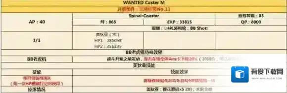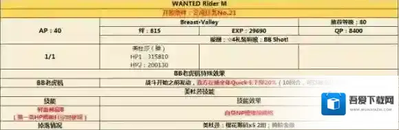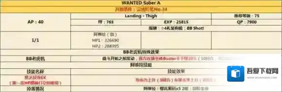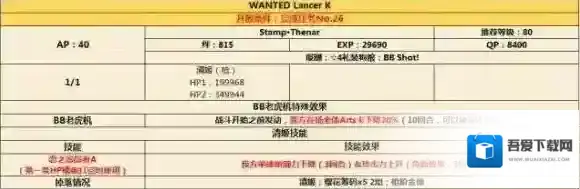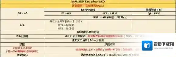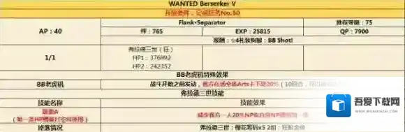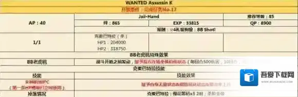 通缉本的敌人固定为一个拥有两条HP槽的从者,血量总和在40W左右。第一条HP槽被打空时,会释放特定的技能,这个技能不占用行动次数。
