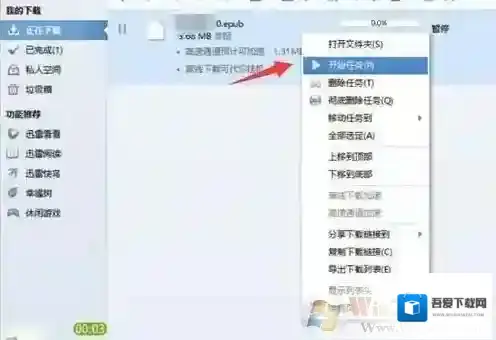 然后,我们再一次右键这刚刚暂停的下载任务。