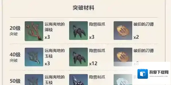 20级:远海夷地的瑚枝3、隐兽指爪3、破旧的刀谭2;