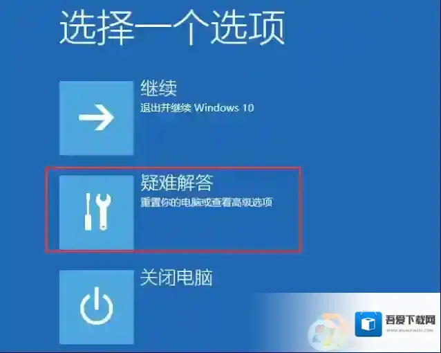 再按键盘上下键,选中“Disabled”,意思是关闭SecureBoot,选中后按回车键,然后按“F10”键并按回车键确认则保存BIOS配置。方案四:Win10重置1、启动计算机,启动到Windows10 开机LOGO时就按住电源键强制关机;2、重复步骤3次左右启动后出现“选择一个选项”,或修复计算机界面;3、然后我们选择疑难解答进入;