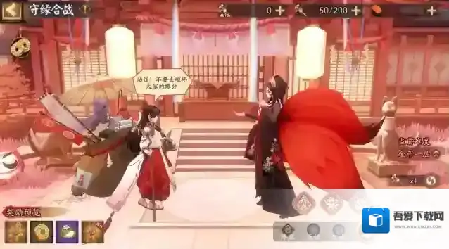 ※守缘合战:共有十层挑战,大人们可消耗「红绡纺锤」或体力挑战阻碍缘分的妖怪,成功挑战即可开启下一层,并获得「千丝缘结」等奖励,固定回合内通关还有额外奖励。