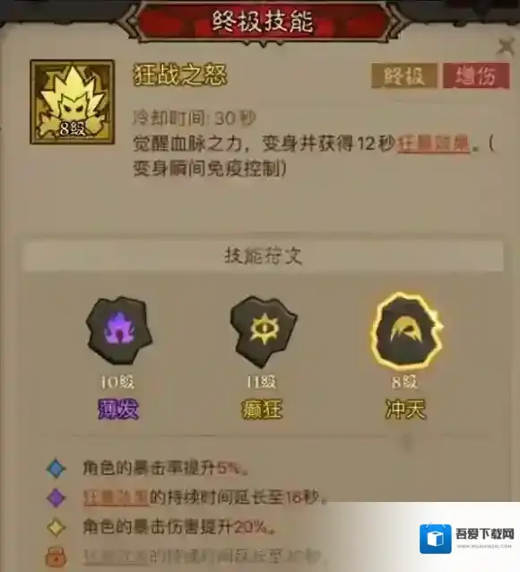 3、掌控技能:践踏·强劲、战争怒吼·破势