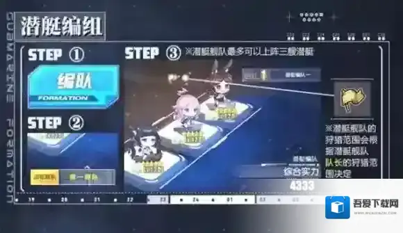 潜艇舰队会在自己的狩猎范围内主动打击敌方水面舰队,并根据潜艇舰队实力决定对敌人造成的伤害。