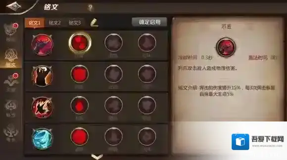 德鲁伊熊形态与人形态共用一套铭文,铭文搭配可分为:守护、野性与自然三类。