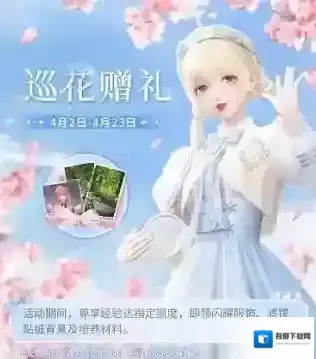 此次游戏更新后至4月23日,“巡花赠礼”限时活动开启,玩家尊享经验到达指定额度即可获得巡花的赠礼。累计尊享经验达0,赠礼含幻之券及金币;累计尊享经验达60,赠礼含闪耀单品“虹色奇遇”,幻之券、金币及既定钥匙;累计尊享经验达120,赠礼含闪耀单品“天真风度”,星钻及既定稀有钥匙;累计尊享经验达180,赠礼含限定滤镜“蓝紫心晴”、贴纸背景“雨后青意”、贴纸背景“露湿芳丛”。