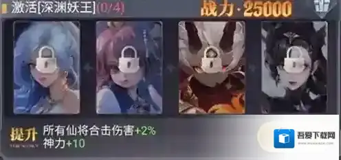 战力:25000、提升:所有仙将合击伤害+2%,神力+10。