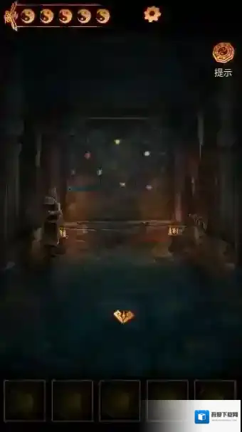 9、桌上获得五个动物灵墓和石印, 将石印放在右边墙面的凹槽处,进入下一个密室。