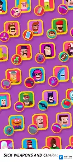 游戏中,我们需要通过拖动屏幕来控制角色投掷的角度和力度,瞄准好敌人进行射击,利用角色独特的武器去击中对手,造成不俗的伤害!不断的去消灭对手来赢下比赛,获得丰富的奖励,解锁更多有意思的角色和模式,体验更加丰富的内容!