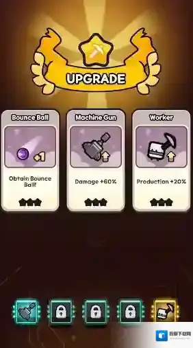 2、机器两侧的小人会自动采矿来获得经验,提升等级后可以获得卡牌提升能力。
