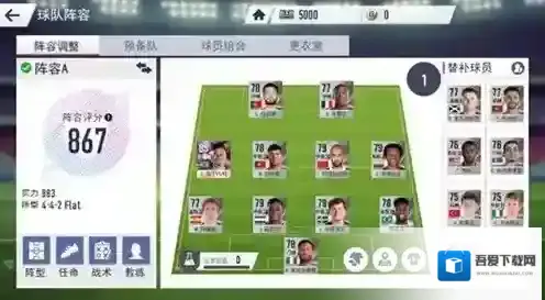 5、所以我这边给各位朋友一个前期百搭阵容,以8名90以下的球员卡+替补席凑出一个100化学的阵容,剩下三个主力位置可以上任意卡,来实现前期的战力最大化。