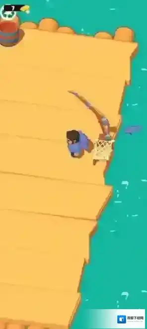 2、动态环境与随机事件设计,平静海面下暗藏危机,鲨鱼袭击、风暴突袭等挑战需谨慎应对,提升游戏紧张感。