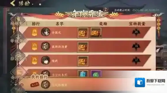 6月11日0点将依据玩家宝物收藏数量进行全服排名,优胜者可获得橙色英雄自选箱、补天石等超值奖励。