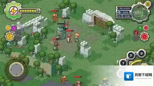 6、当放好建筑后点击左上角的红色按钮可以开始战斗,你可以操控角色亲自上阵或者看着炮塔消灭你的敌人。