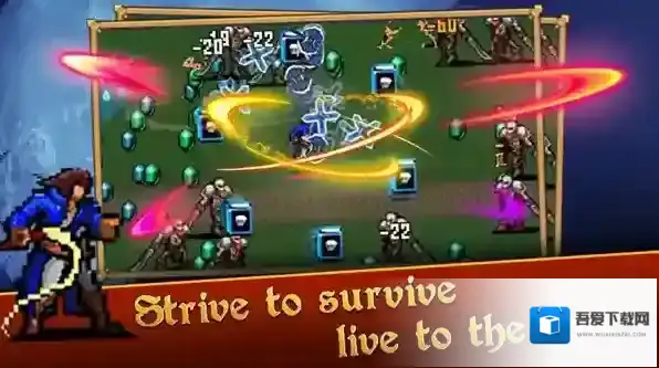 3、进入游戏场景后,操控英雄与如蝙蝠等怪物战斗,注意屏幕上方的等级、时间等信息,适时使用技能。