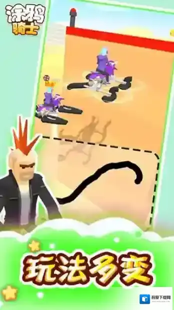 涂鸦骑士(Scribble Rider),由国外知名游戏厂商VOODOO推出的一款趣味闯关游戏,你一定也听说过他们家其他的游戏,类似《黑洞大作战》、《拥挤城市》等,而这款《涂鸦骑士》也是有着不输它们的趣味玩法和人气哦!游戏中玩家需要通过手绘来画出车轮的形状,根据场景和地形的不同来随时更换轮胎,让自己的角色可以顺利的前进,直到冲过终点获得胜利!游戏中有着丰富多样的场景可以去挑战,并且还能为角色们更换上各种炫酷的皮肤,打造你的专属骑士!