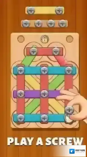 2、点击游戏界面把螺丝拧在没有木板上,木板从螺丝上掉落即可过关。