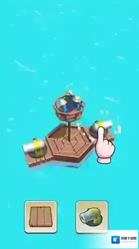 1、木筏生态建造:点击拖拽材料完成木筏扩建,木板搭建平台、树叶制作遮阳棚、绳索加固框架,根据航行需求设计“垂钓区-储物舱-武器台”的功能分区。