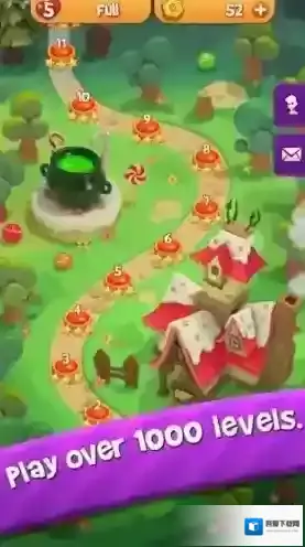 1、动态视觉盛宴:3D卡通渲染呈现果冻糖的Q弹质感、巧克力的丝滑光泽,消除时触发糖果雨与星光爆破特效,女巫释放魔法时的裙摆飘动与咒语光效,营造沉浸式甜美元宇宙。
