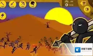 3、正式开始后点击左上角的按钮可以召唤不同的兵种,只有矿工可以采矿,采矿获得的黄金能召唤其他兵种。