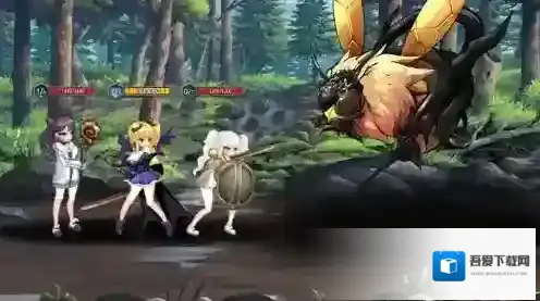 3、挑战Boss时,操控角色(如白衣、持盾少女),集火箭头指向的怪物,利用技能连招,躲避攻击,争取胜利。