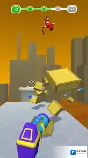 1、点击屏幕发射炮弹,击倒箱子。