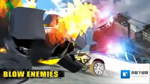 3、在“BLOW-ENEMIES”环节,抓住时机,撞击、攻击箭头指向的敌方车辆,摧毁目标,获取对战胜利。