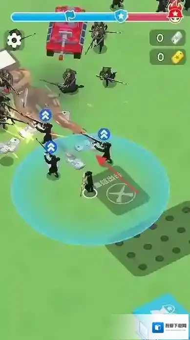 1、“派兵作战”,点击派兵,指挥黑色士兵部队,攻打敌方(巨人、坦克),推进战线。