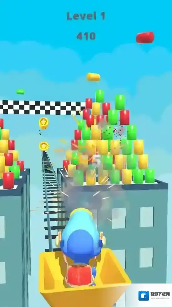 2、在轨道行进场景中,点击屏幕操控角色射击窗外障碍物,像飞来的木箱、悬挂的铁架等,射击精准度会影响得分与列车安全。