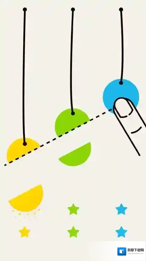 3、清新简约的视觉设计,明亮的色彩搭配舒适不刺眼,动态背景会随切割操作产生波纹特效,增强互动感和成就感。
