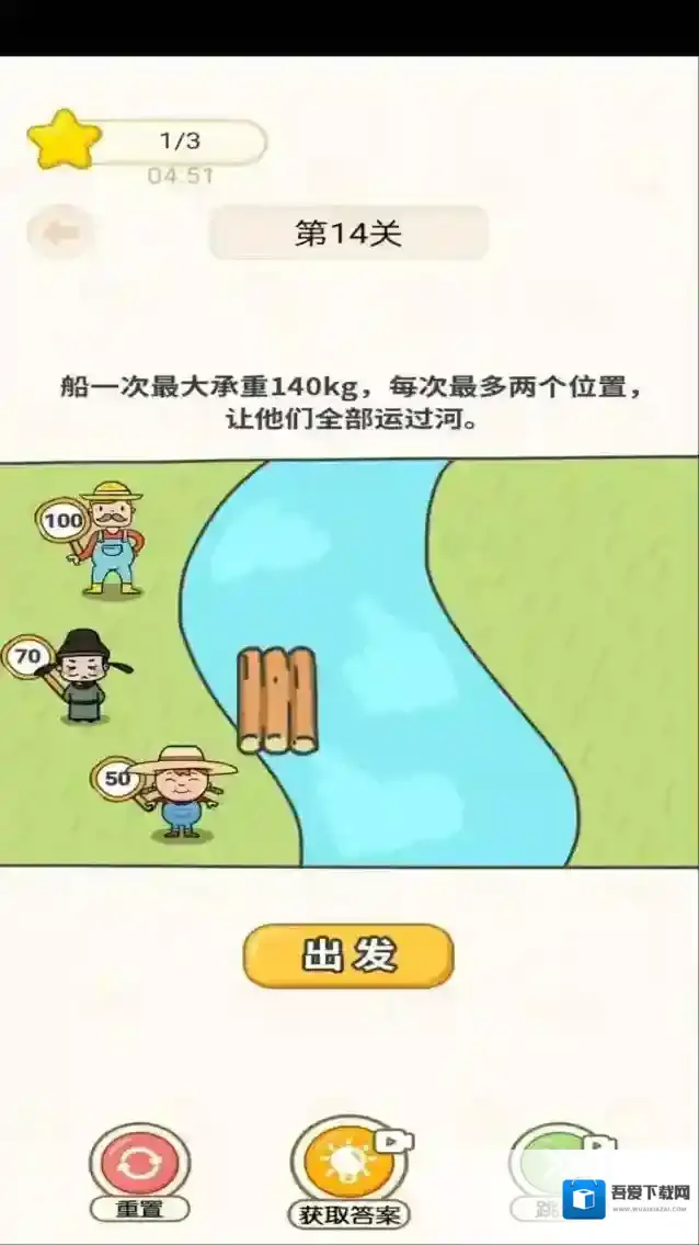 2、这是过河类益智类型关卡,解题关键在于依据各条件限制,合理规划每次乘船过河的组合,保证河两岸各元素相安无事。