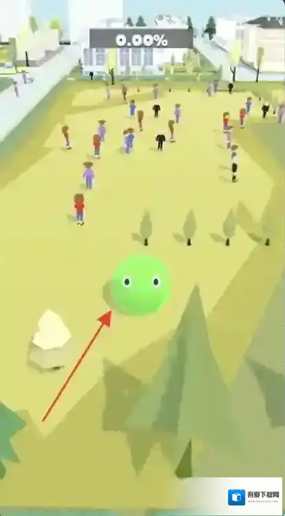 1、玩家操控绿色球体在开放场景中移动,通过操作使其接近并接触人群。