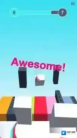 2、操控小球在彩色平台上跳跃,匹配平台颜色,避免掉落,推进进度条。