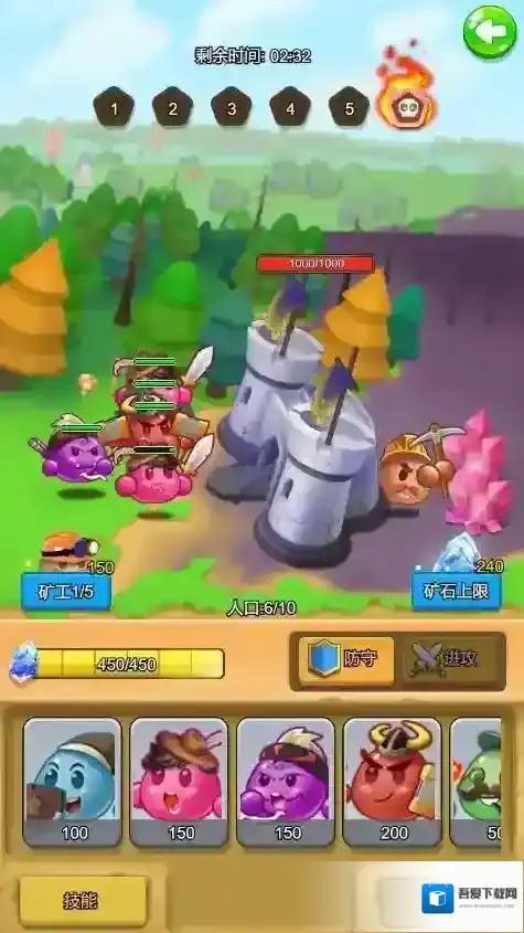 2、闯关收集资源升级:带领团子团队挑战不同关卡,击败敌人获取资源,将资源投入城堡修建与团子培养,升级城堡防御设施提升整体防御值,强化团子等级与技能增强战斗实力。