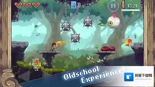 3、面对如链球、眼球等怪物,利用角色技能,依照红色箭头指示方向移动,体验复古玩法。