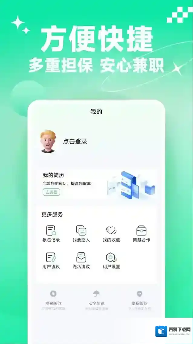3、提供完善的保障服务,可以保证用户做兼职时的收入和利益,让用户放心做兼职。