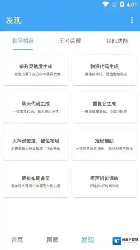 3、在吃鸡游戏的专属模块下,可以进行参数灵敏度、物资代码以及聊天代码的详细调整。