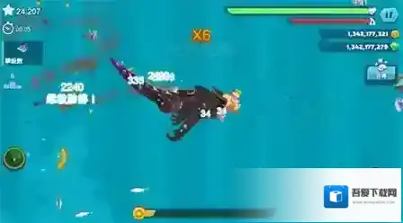 3、进入地图后,控制鲨鱼移动进行捕食,但请注意,只能捕捉比你小的海洋生物。