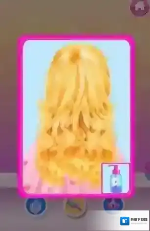2、依照箭头所指,选择护理道具(如点击右下角的护理液图标),对角色头发进行护理操作,改善头发状态。